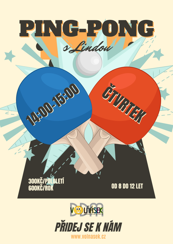 Chceš si zlepšit postřeh, rychlost a koordinaci? Baví tě soutěžit a zároveň se bavit? Přihlas se do našeho ping-pongového kroužku, kde si pořádně zasmečuješ!